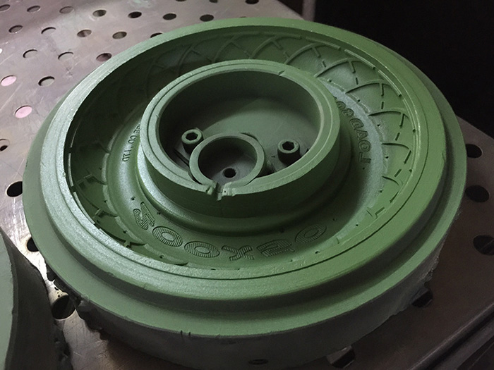 采用手工的砂布或鋼絲物理研磨及干式噴砂,根據需要可以選用不同的組合清洗。機械清洗法是一項成熟的技術,被輪胎行業廣泛采用。該法具有簡單易行,對設備、工具要求不高等優點,但也有無法克服的缺陷:會對模具造成機械損傷,縮短模具壽命;噴砂處理容易堵塞模具的排氣孔,噴砂后疏通排氣孔的工作量很大。須拆裝模具,造成勞動強度高,清洗周期長。